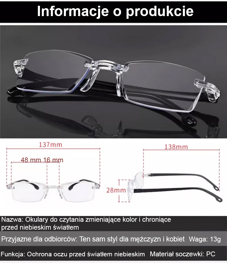 Zmieniające kolor okulary do czytania chroniące przed niebieskim światłem