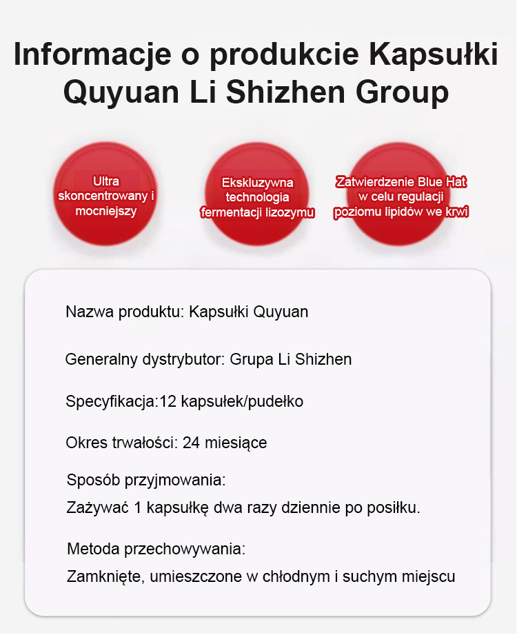 Kapsułki Quyuan do regulacji lipidów we krwi.